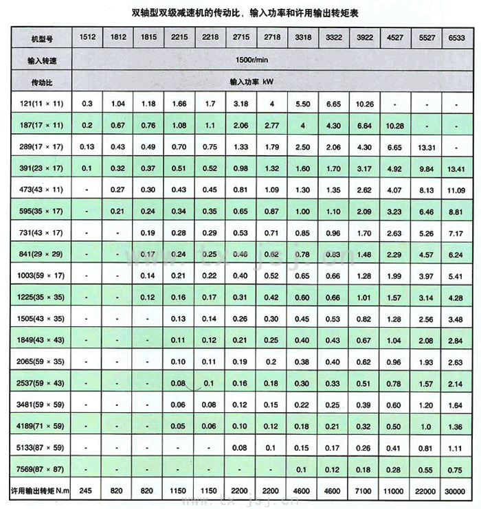 2、雙級臥式擺線減速機(表2)